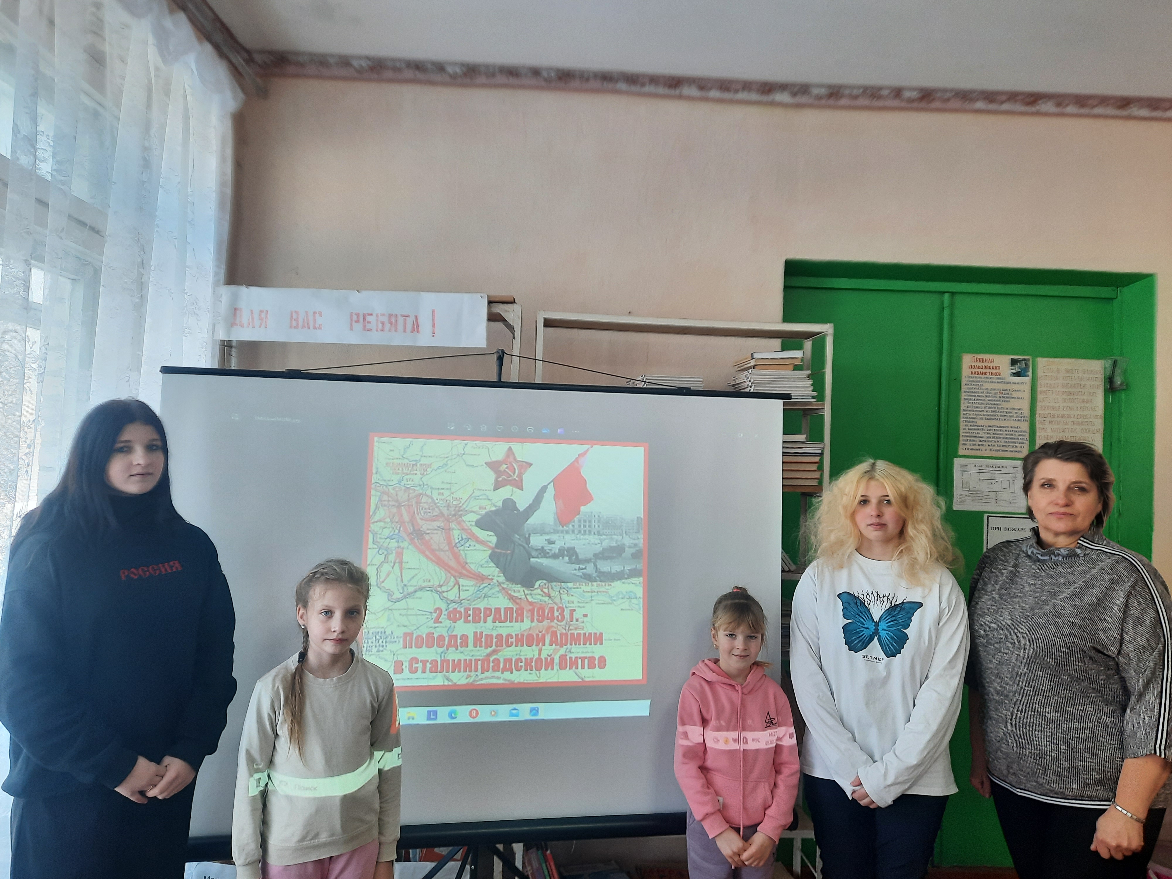 5 февраля в Кузьмичской сельской библиотеке состоялся урок памяти «Победа по имени Сталинград». Мероприятие было направлено на знакомство детей с ключевыми событиями этой великой битвы. Библиотекарь поведала о героизме и мужестве советских солдат, а также показала памятники, напоминающие о тех трагических днях.