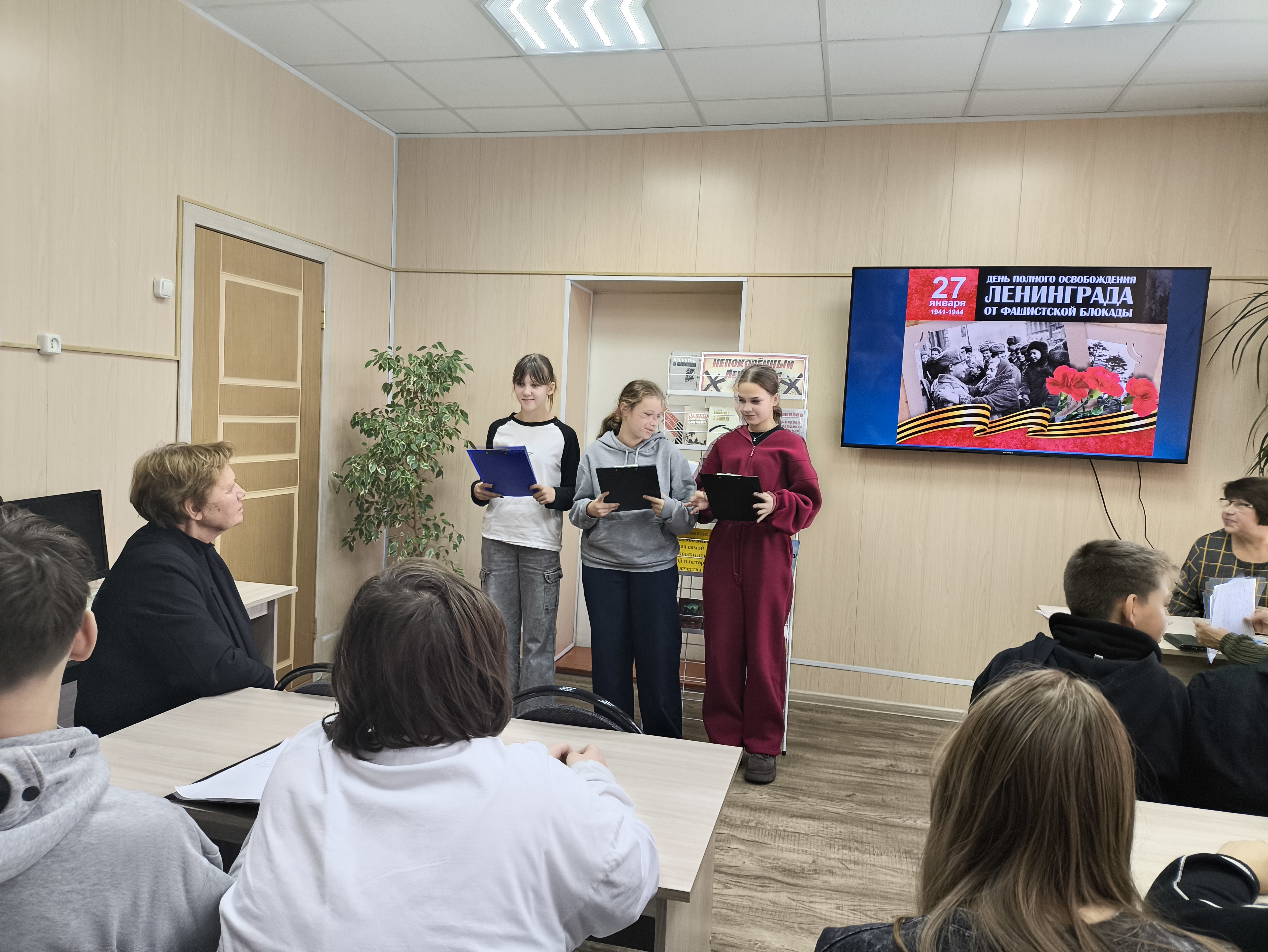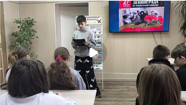 Ребята прочитали стихи Татьяны Варламовой «Ленинградский салют», Юрия Воронова «Сотый день», Михаила Калегова «Ленинградцам» и Ольги Берггольц «...Я говорю с тобой под свист снарядов...».