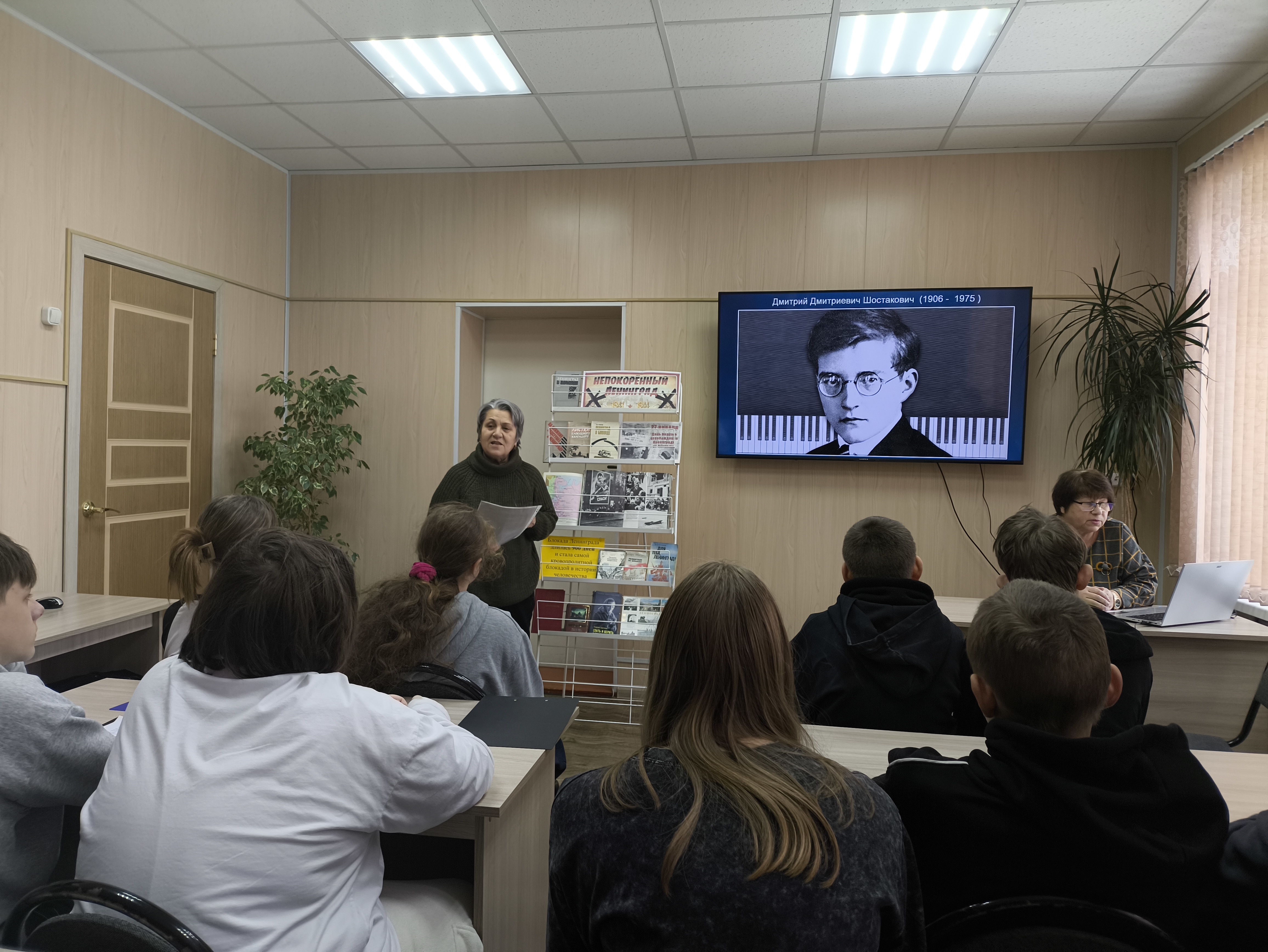 Елена Юрьевна Корниенко рассказала о жизни и творчестве Шостаковича, который начал работать над симфонией в осажденном Ленинграде осенью 1941 года. Несмотря на тяжелые условия блокады, композитор сумел завершить произведение, полное глубокого смысла и эмоционального накала. Особое внимание было уделено роли дирижера Карла Элиасберга, который, собрав оставшихся музыкантов, организовал премьеру симфонии в блокадном городе. Участники встречи прослушали ключевые эпизоды произведения, почувствовав его мощь и драматизм, отражающий трагедию войны и силу человеческого духа.